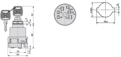 | key position | connection | max current 12v | max connec. time | function | max current 24v | notes |