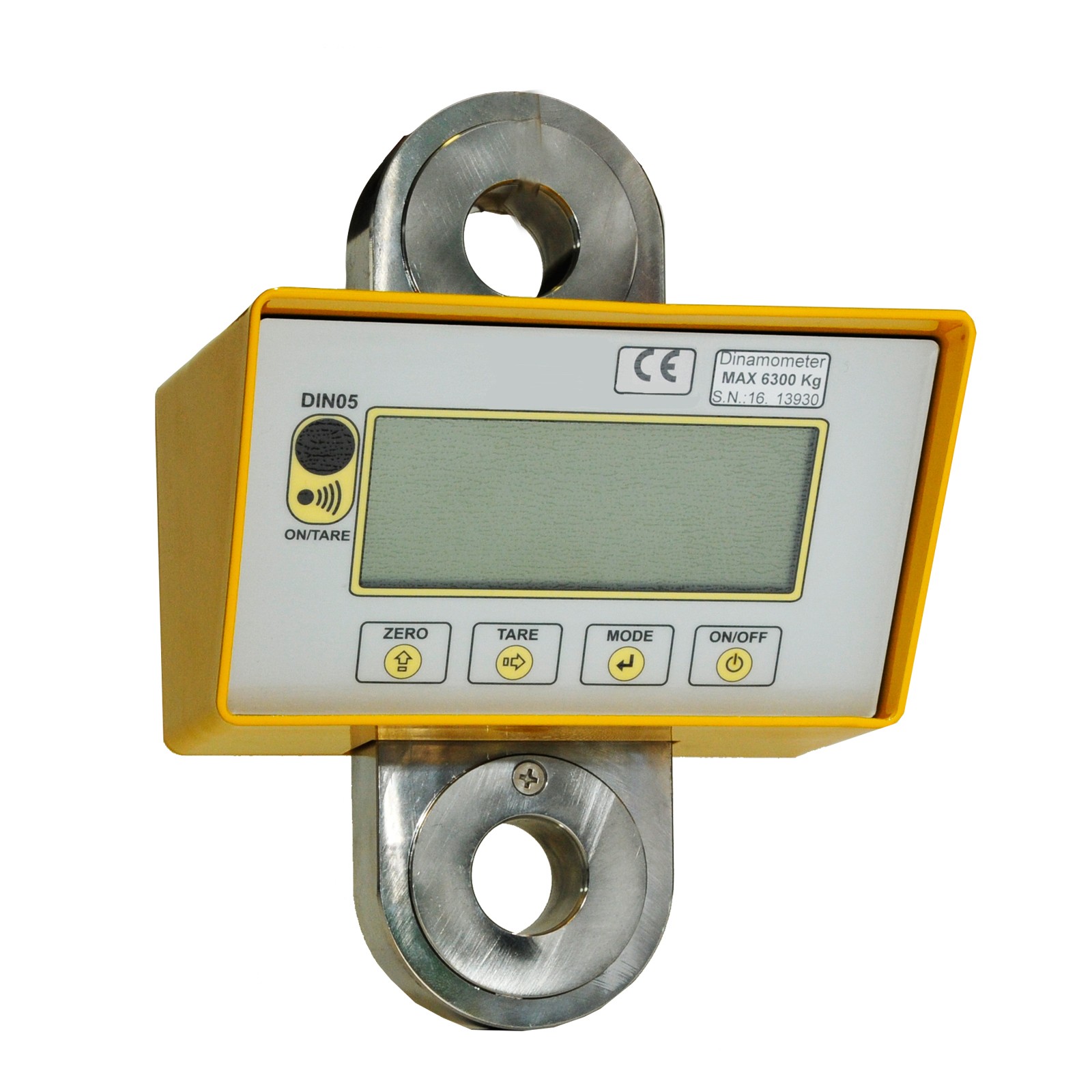 electronic dynamometer composed by a stainless steel traction load cell and an aluminium housing where is placed an electronic with a liquid crystal display 5 digit h=2,5, designed for weighing suspended loads with radio transmission to the hand receiver instrument model rx di02 or rx02 port with transmission frequencies 868 mhz up to a distance of 50 meters . functions are provided for: digital zero and weight settings, digital filter selection (greater attenuation of weight oscillations), automatic power-off selection, peak function and hold function and measuring units selection (kg – n – kn - lb).