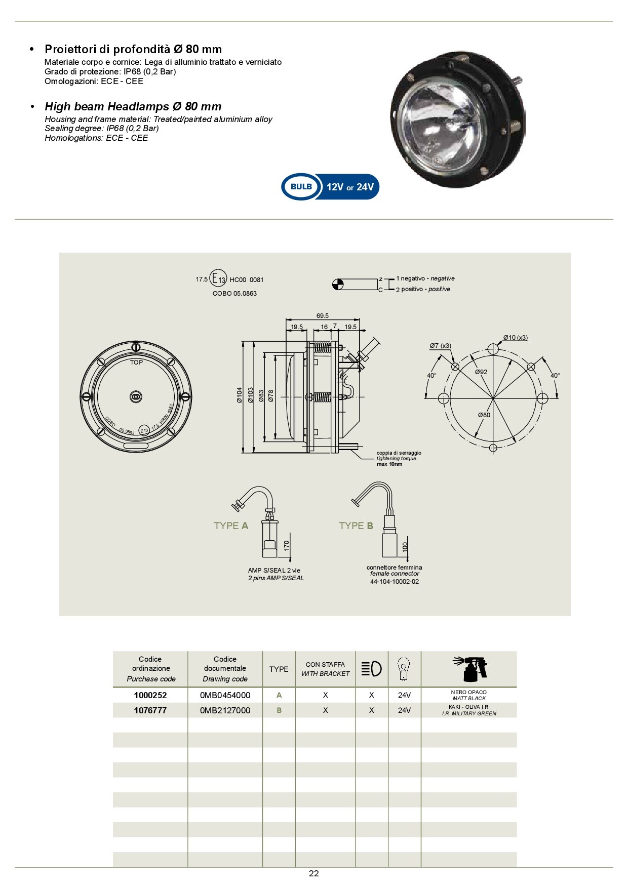 -drawing code 0mb0454000, purchase code 1000252, type a, with bracket, headlamps, bulb 24v, colour matt black
