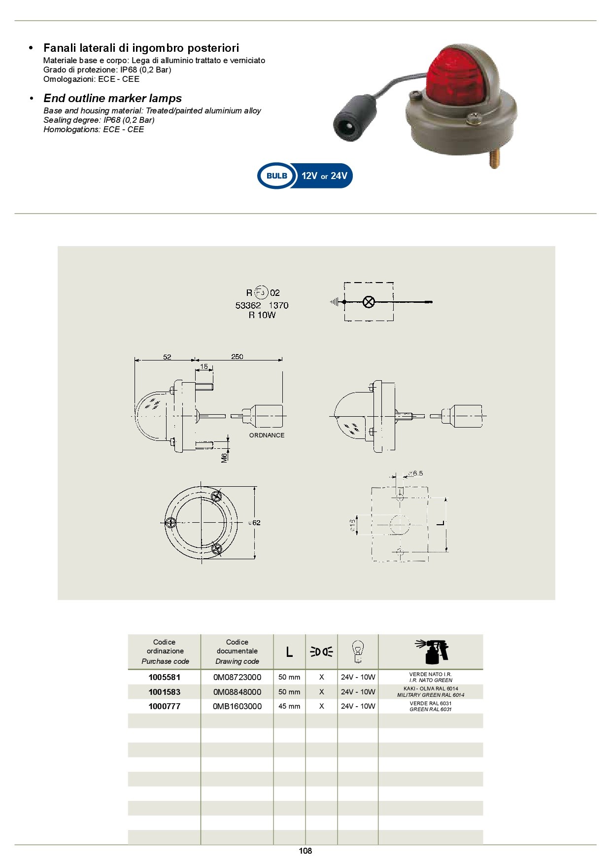 -drawing code 0m08848000, purchase code 1001583, l 50 mm, position, bulb 24v - 10w, colour military green ral 6014
