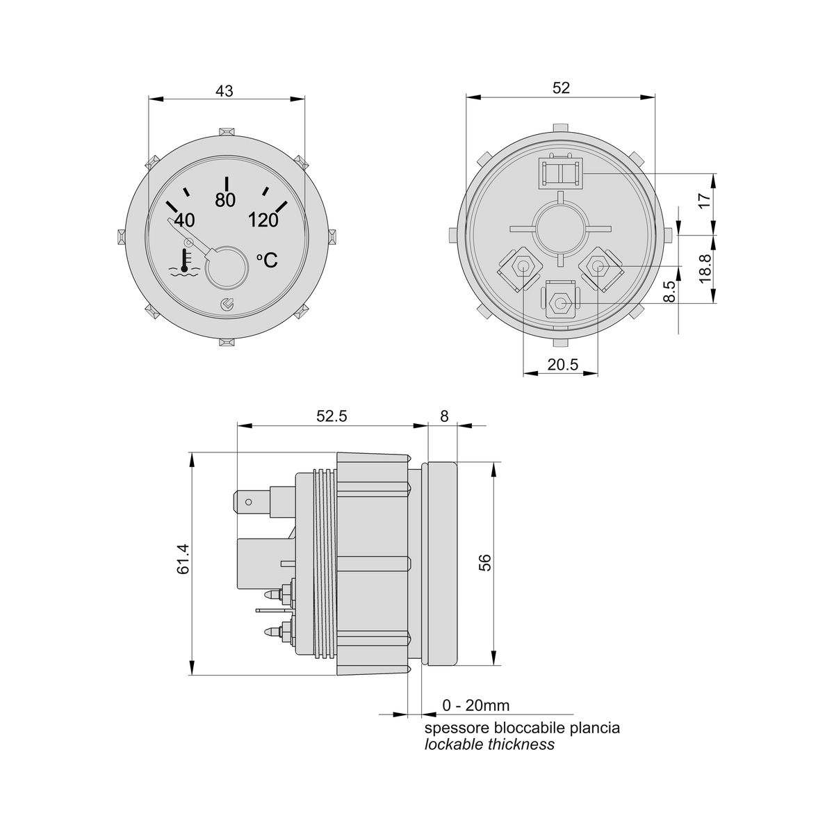 UNIDECK 12V 52 DIAMETER INSTRUMENT