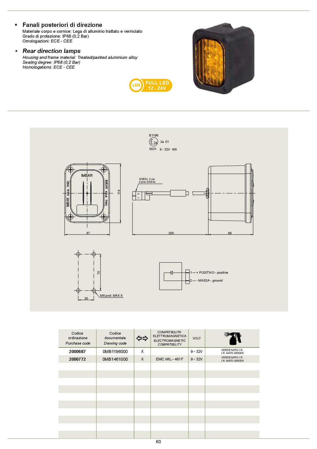 -drawing code 0mb1461000, purchase code 2000772, turn signal, electromagnetic compatibility emc mil - 461f, volt 9 - 32v, colour i.r. nato green