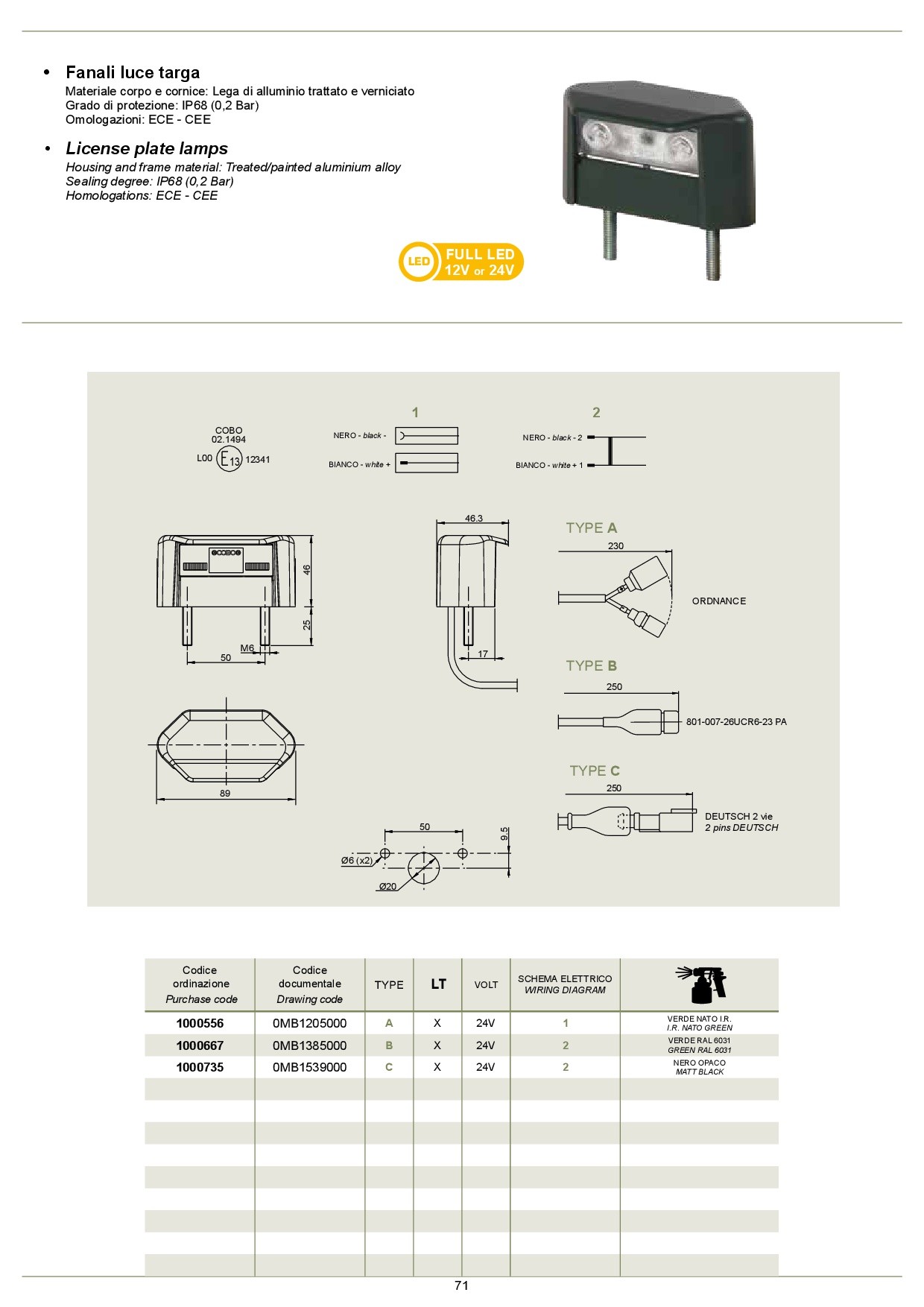 -drawing code 0mb1385000, purchase code 1000667, type b, lt, volt 24v, wiring diagram 2, colour green ral 6031