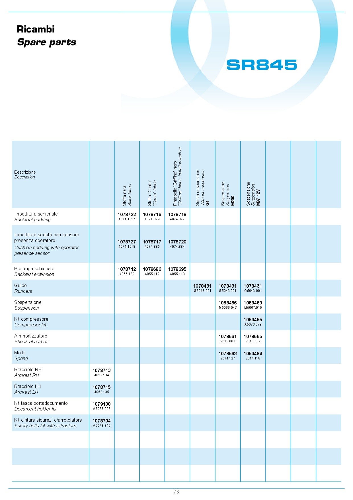 e8077.044 - 1077115, "canto" fabric, suspension 97,armrest b6, safety belts with retractors, runners, backrest extension, microswitch operator presence, backrest reclining, document holder, backrest adjustment, lumbar adjustment, weight adjustment, height adjustment.