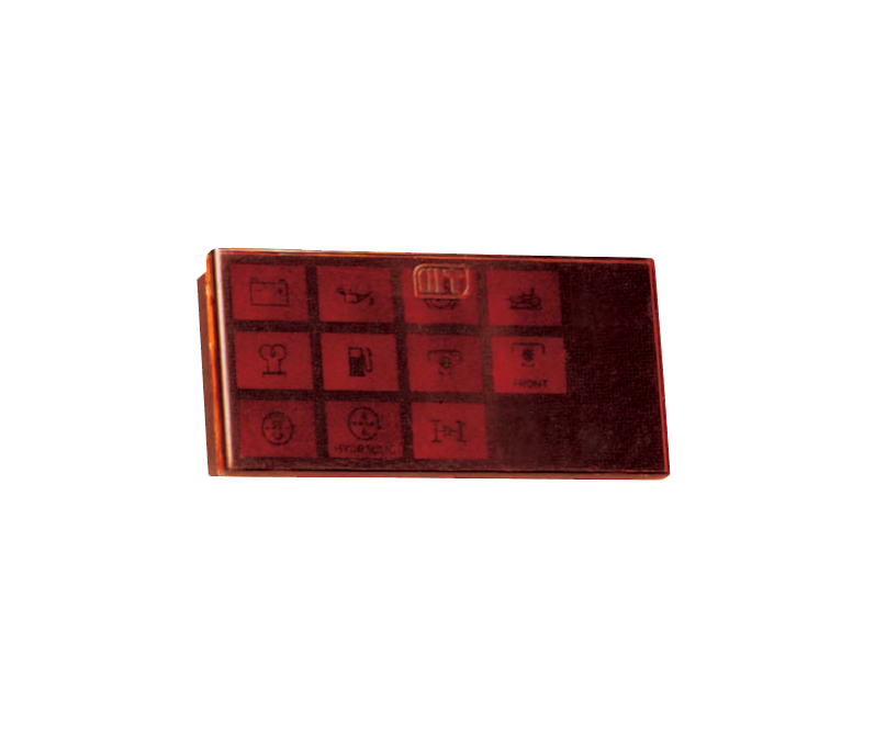 generator - turn signal - high beams - oil filter - fan - oil pressure - slow gear - fuel reserve -