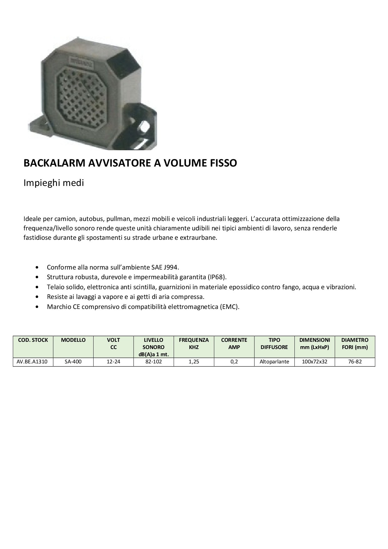BACKALARM AVVIS.ACUSTICI 12/24V