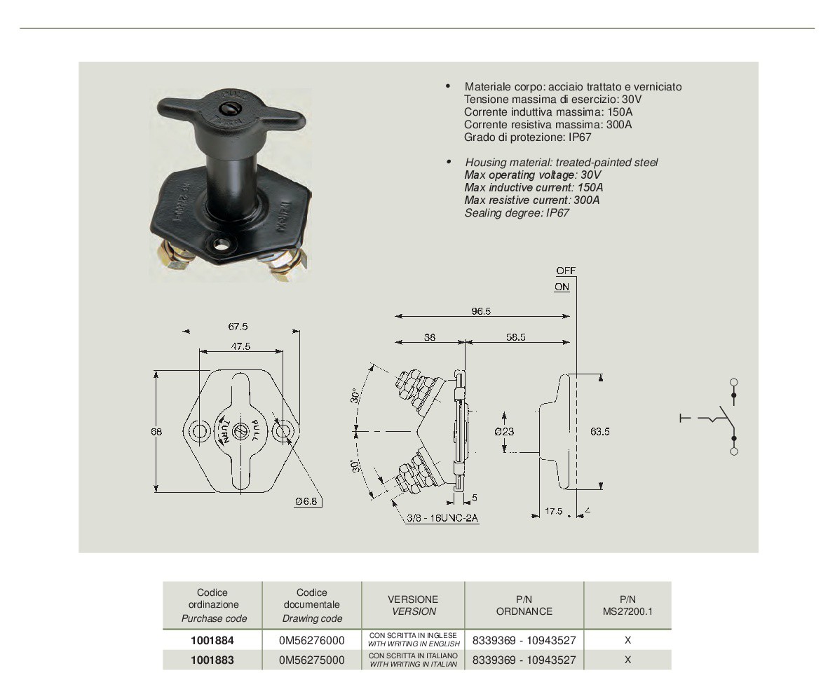 - cod.documentale 0m56275000, codice ordinazione 1001883, versione con scritta in italiano, p/n 8339369 - 10943527, p/n ms27200.1