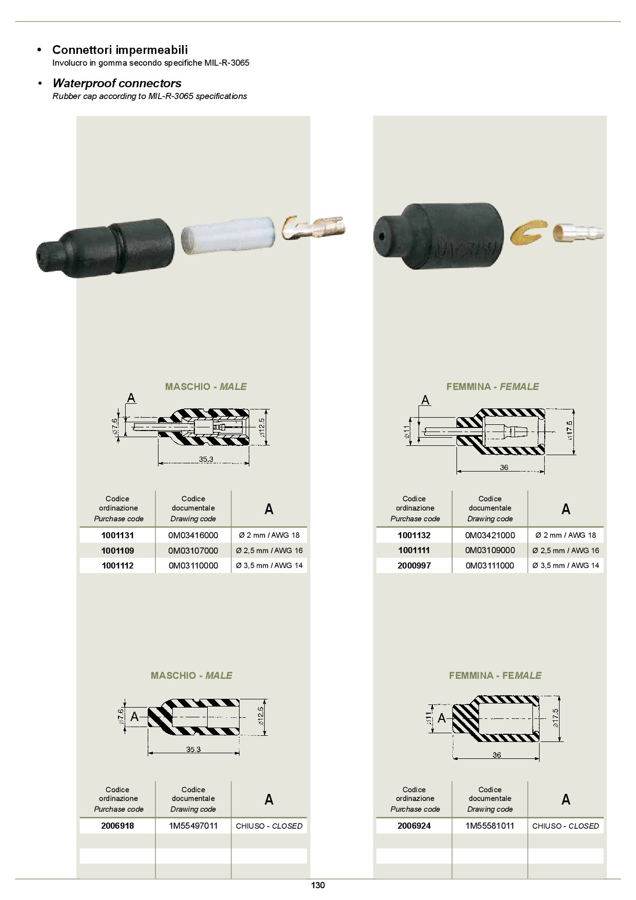 - cod. documentale 0m03109000, codice ordinazione 1001109, type a, ø 2,5 mm / awg 16