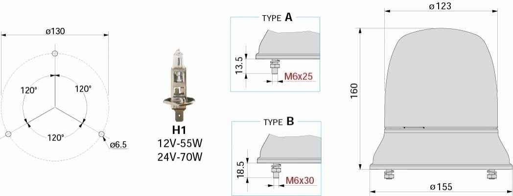 LAMPADA ROTANTE AMBRA IR.12V NON TR